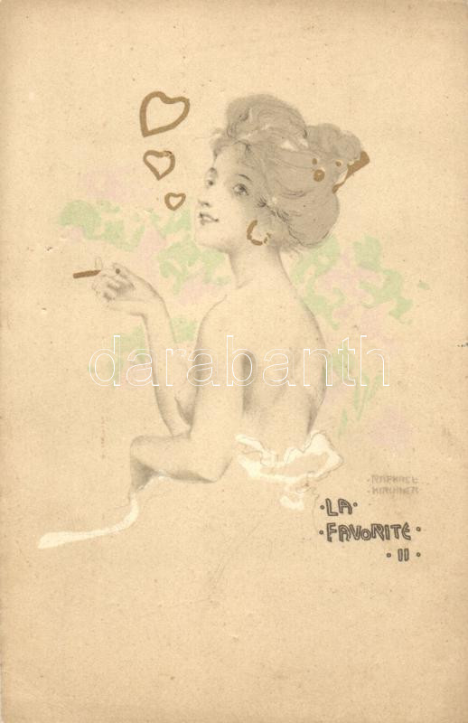 La Favorite II. smoking lady s: Raphael Kirchner https://www.darabanth.com/hu/19-Nagyaukcio/19.1/Motivum-kepeslapok/Raphael-Kirchner~6618/La-Favorite-II-smoking-lady-s-Raphael-Kirchner~II908886