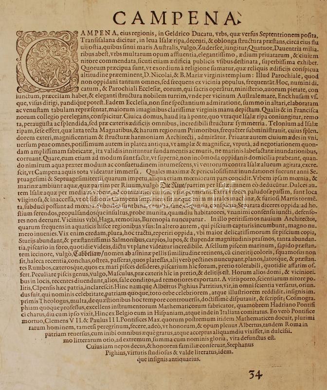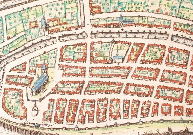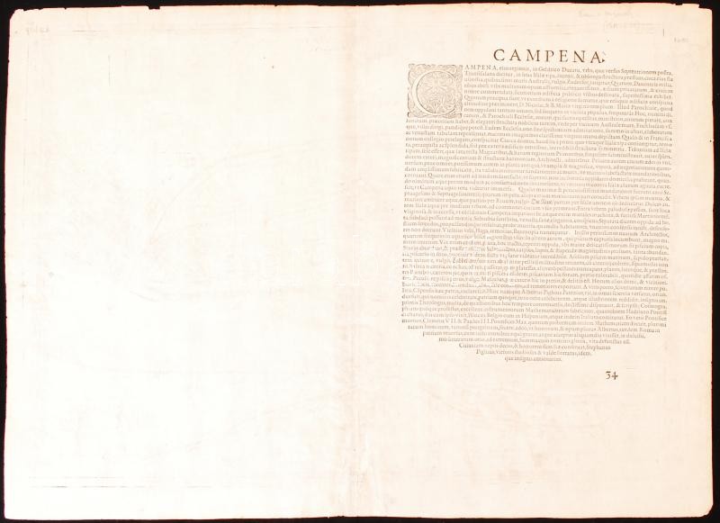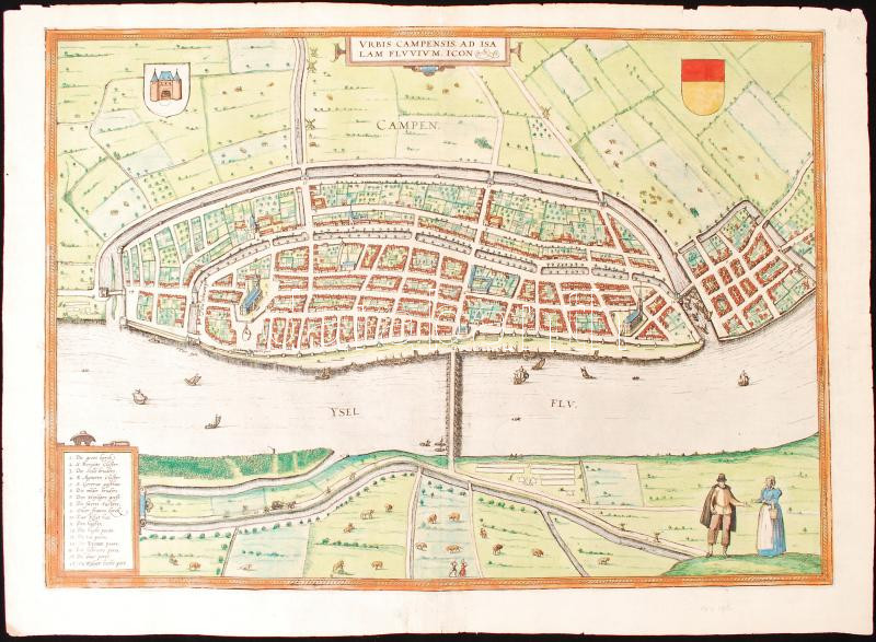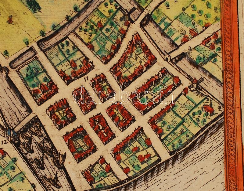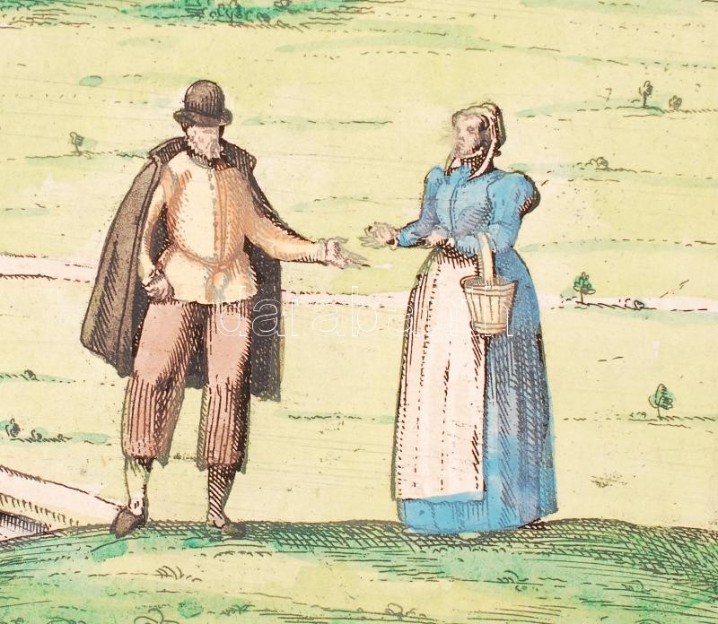 1581 Campen német város rézmetszetű képe, Megjelent: Braun, G. - Hogenberg, F. Civitates Orbis Terrarum c. könyvében. Alján a hajtásnál kis szakadás. / 1581 Germany, view of Campen. Etching. Published in Braun, G. - Hogenberg, F. Civitates Orbis Terrarum. III. 52x38 cm