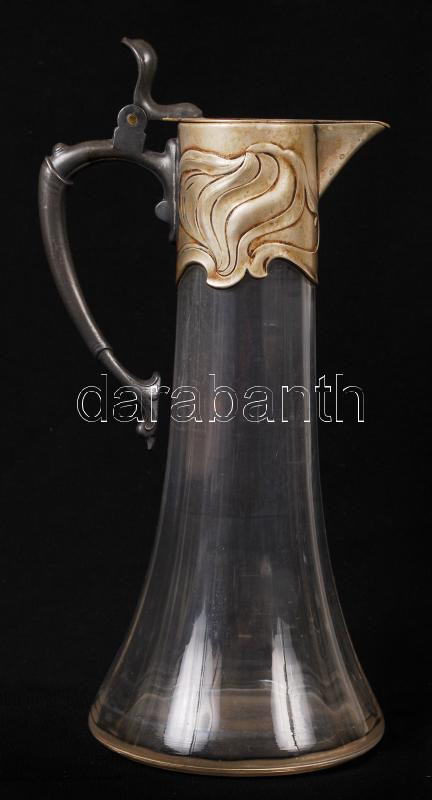Leírás: WMF szecessziós karaffa, fém tetővel, üvegen apró karcolással, m:27 cm / WMF Art Nouveau carafe