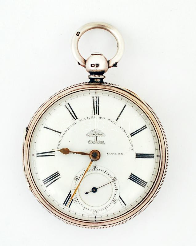 John Forrest ezüst (Ag.) zsebóra, számlapon "Chronometer marker to the admirality" felirattal, másodpercmutatós, jelzett, működőképes, jó állapotban, felhúzó kulccsal, sorszámozott (0852)/ John Forrest Silver Fusee Pocket Watch: marked inside Chronometer Maker to the Admiralty-London-EC and No.0852.