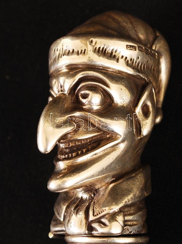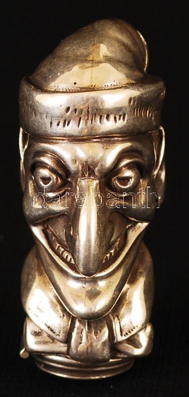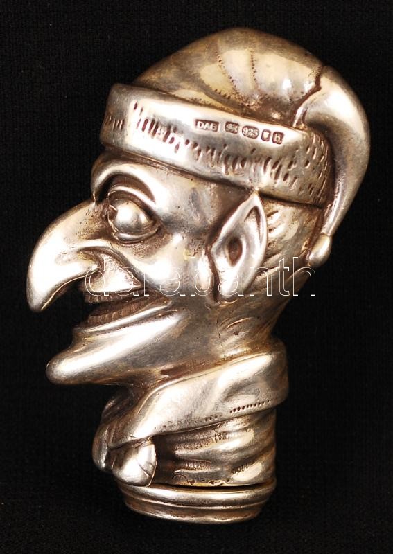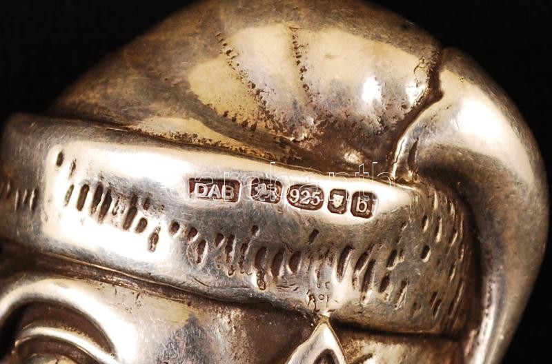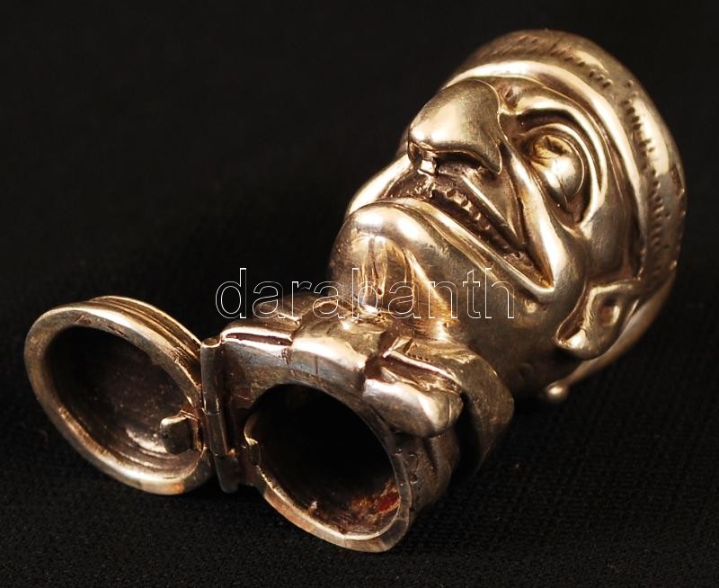 Ördögfejes ezüst (Ag.) gyufatartó, jelzett, jó állapotban, mesterjeggyel: David Bowles (DAB), m:7 cm, nettó:137 g/ Devil head match holder,