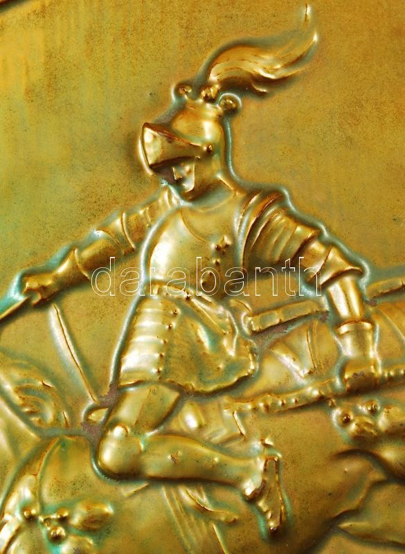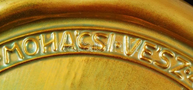 Leírás: Zsolnay "Mohács 1526-1926" nagy méretű emlék plakett (Nagy Árpád), eozin mázas, márka jelzés nélkül, hibátlan, d:25 cm