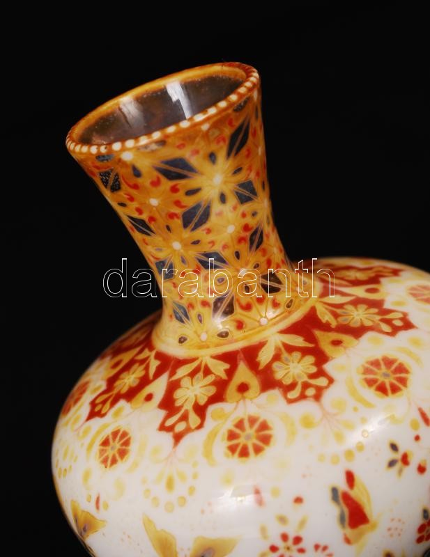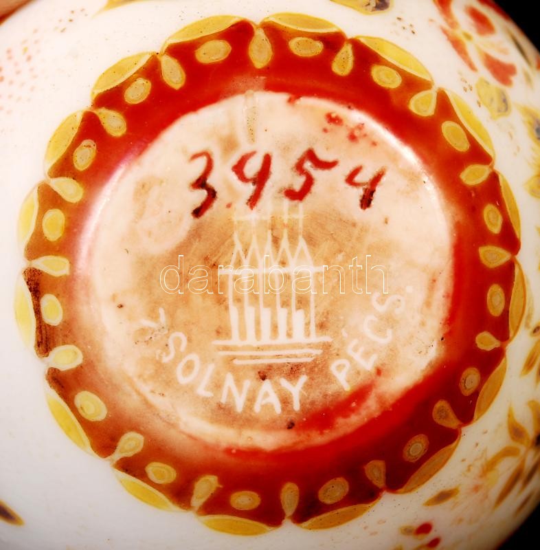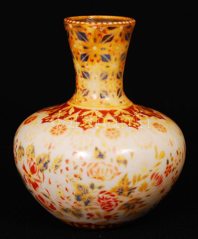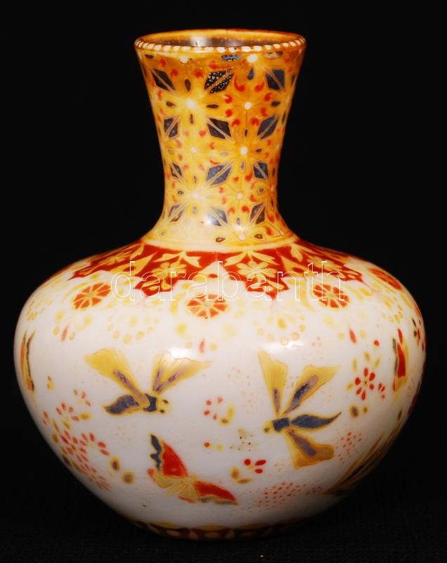 Zsolnay kis váza, kézzel festett, jelzett, hibátlan, kis kopásokkal ... https://www.darabanth.com/hu/19-Nagyaukcio/19.1/Mutargy-papirregiseg/Porcelan~6541/Zsolnay-kis-vaza-kezzel-festett-jelzett--hibatlan-kis-kopasokkal-formaszam-3954-m7-5-cm~II919613