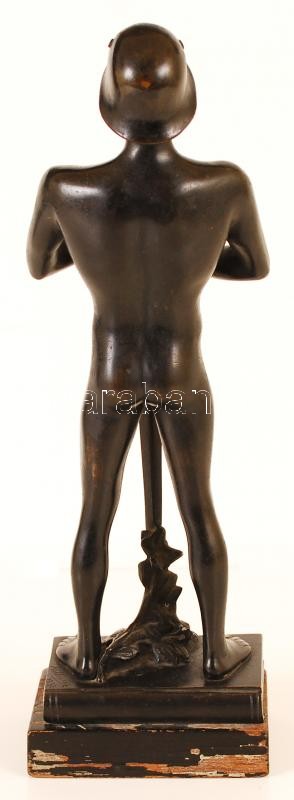 Leírás: Kallos Ede (1866-1950): Férfi akt katona sisakban és karddal. Bronz, jelzett, fa talpon, m:31 cm