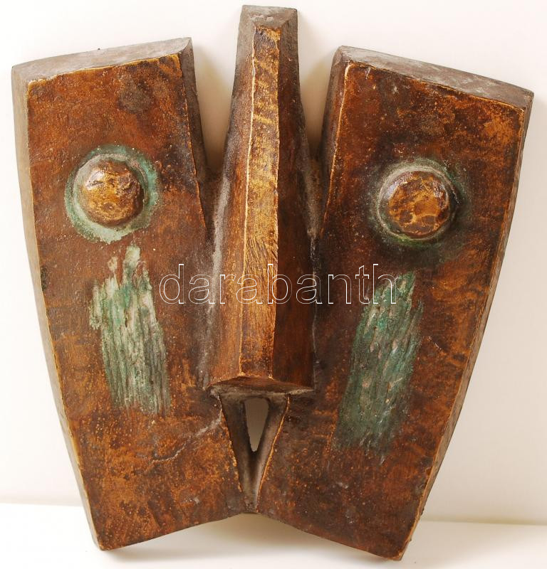 Leírás: Percz János (1920-2000): Fali maszk. Bronz, jelzett, 19×18 cm