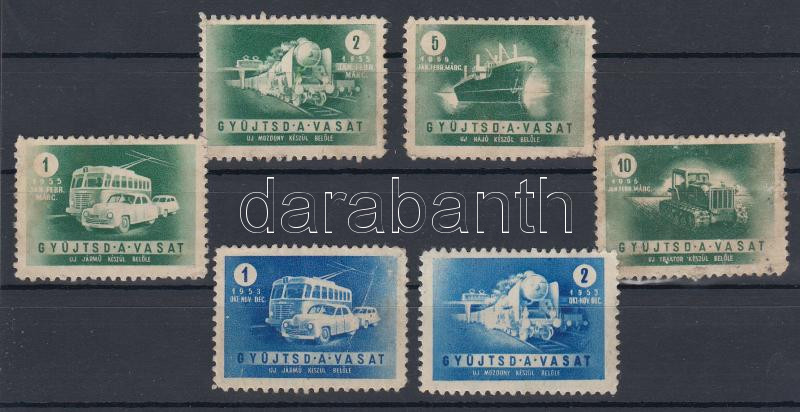 Leírás: 1953-1955 "Gyüjtsd a vasat", 6db, klf propaganda levélzáró