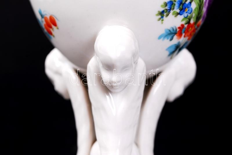 Leírás: Herendi puttó lábas bonbonier, kézzel festett, jelzett, hibátlan, ritka, m:14 cm