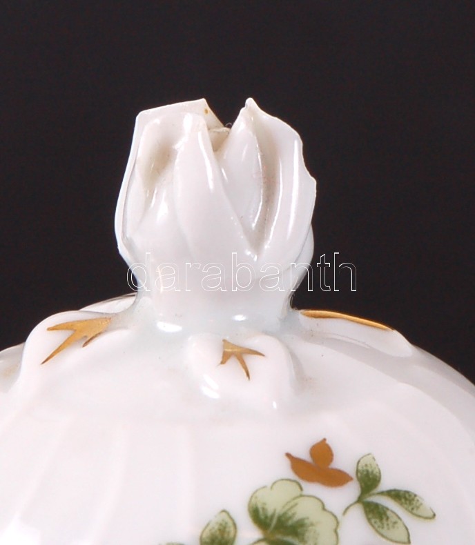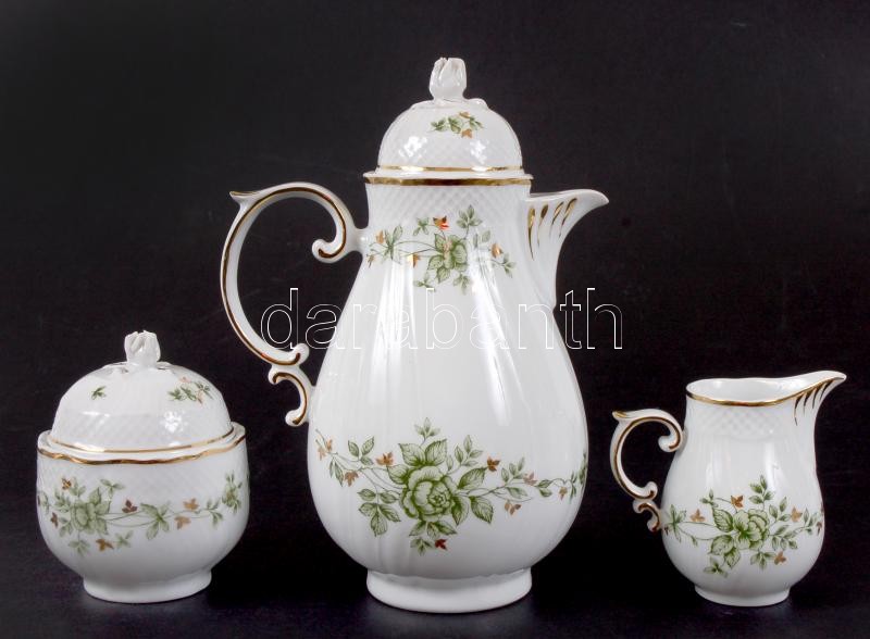 Leírás: Hollóházi Erika mokkás készlet, jelzett, matricás, rózsán apró lepattanás / Hollohaza porcelain coffee set