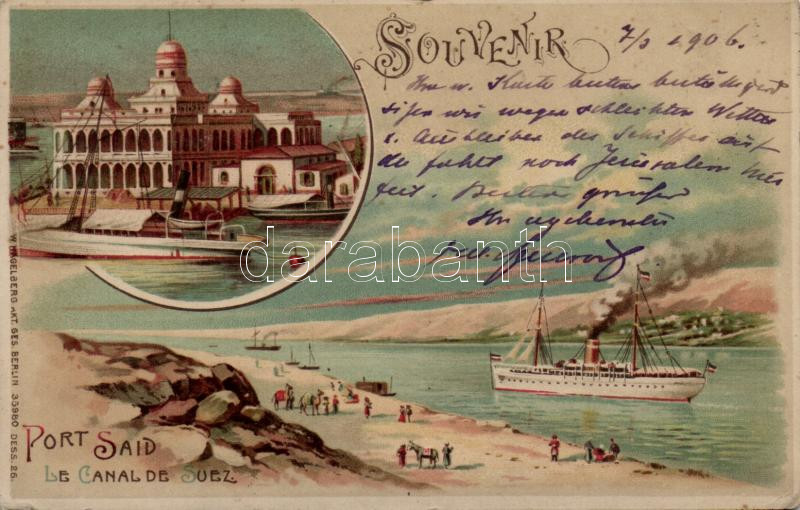Port Said, Suez Canal, litho (small tear) https://www.darabanth.com/hu/190-Gyorsarveres/190.0/Kepeslapok/Egyiptom~800066/Port-Said-Suez-Canal-litho-small-tear~II716738