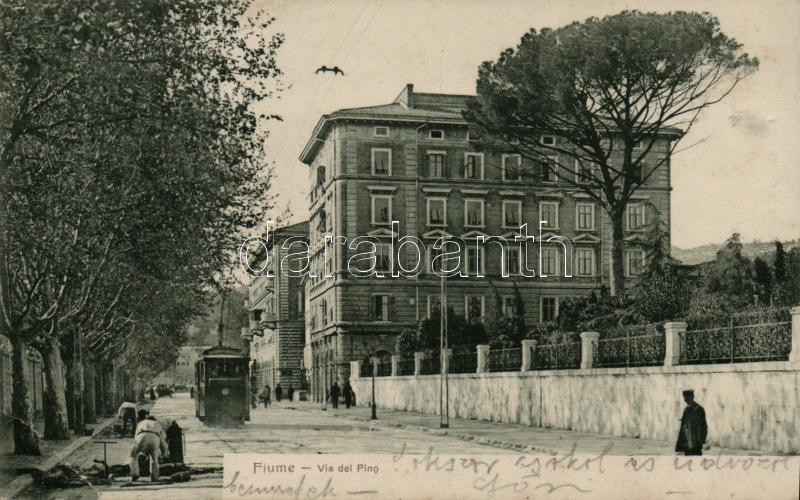Fiume Via del Pino, tram (EM) https://www.darabanth.com/hu/190-Gyorsarveres/190.0/Kepeslapok/Horvatorszag-Delvidek~400009/Fiume-Via-del-Pino-tram-EM~II714585
