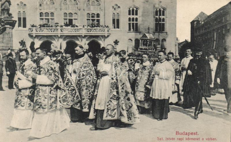 Budapest I. Szent István napi körmenet a várban https://www.darabanth.com/hu/190-Gyorsarveres/190.0/Kepeslapok/Magyarorszag~400005/Budapest-I-Szent-Istvan-napi-kormenet-a-varban~II716845