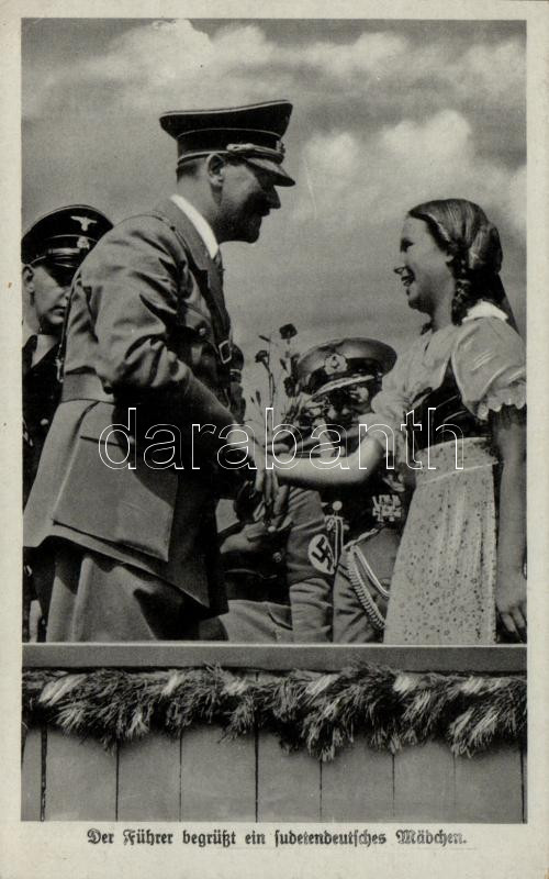 Hitler greets a Sudeten German girl, So. Stpl (EK) https://www.darabanth.com/hu/190-Gyorsarveres/190.0/Kepeslapok/Uralkodo-Politikus~800125/Hitler-greets-a-Sudeten-German-girl-So-Stpl-EK~II716140