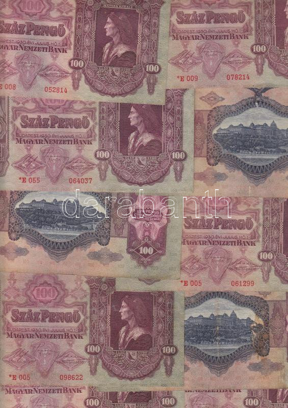 1930. 100P "*E" (10x) T:II,II-,III https://www.darabanth.com/hu/190-Gyorsarveres/190.0/Numizmatika/Magyar-bankjegyek~600007/1930-100P-E-10x-TII-II-III~II713242