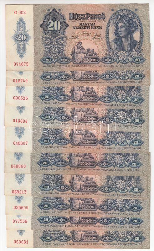 1941. 20P (10x) T:II,II-,III https://www.darabanth.com/hu/190-Gyorsarveres/190.0/Numizmatika/Magyar-bankjegyek~600007/1941-20P-10x-TII-II-III~II713247