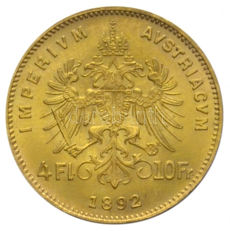 Austria 1892.... https://www.darabanth.com/hu/190-Gyorsarveres/190.0/Numizmatika/Magyar-es-kulfoldi-arany-penzek~600010/Ausztria-1892-4Fl-Au-Ferenc-Jozsef-323g0900-T1--3Cbr3EAustria-1892-4-Florin-10-Frank-Au-F~II714352