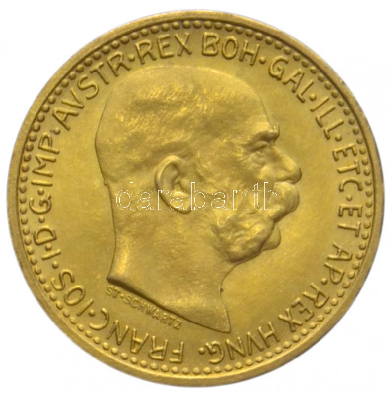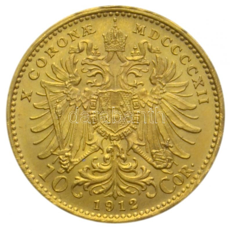 Austri... https://www.darabanth.com/hu/190-Gyorsarveres/190.0/Numizmatika/Magyar-es-kulfoldi-arany-penzek~600010/Ausztria-1912-10K-Au-Ferenc-Jozsef-339g-utanveret-T2-ph-3Cbr3EAustria-1912-10-Kronen-Au-F~II714357