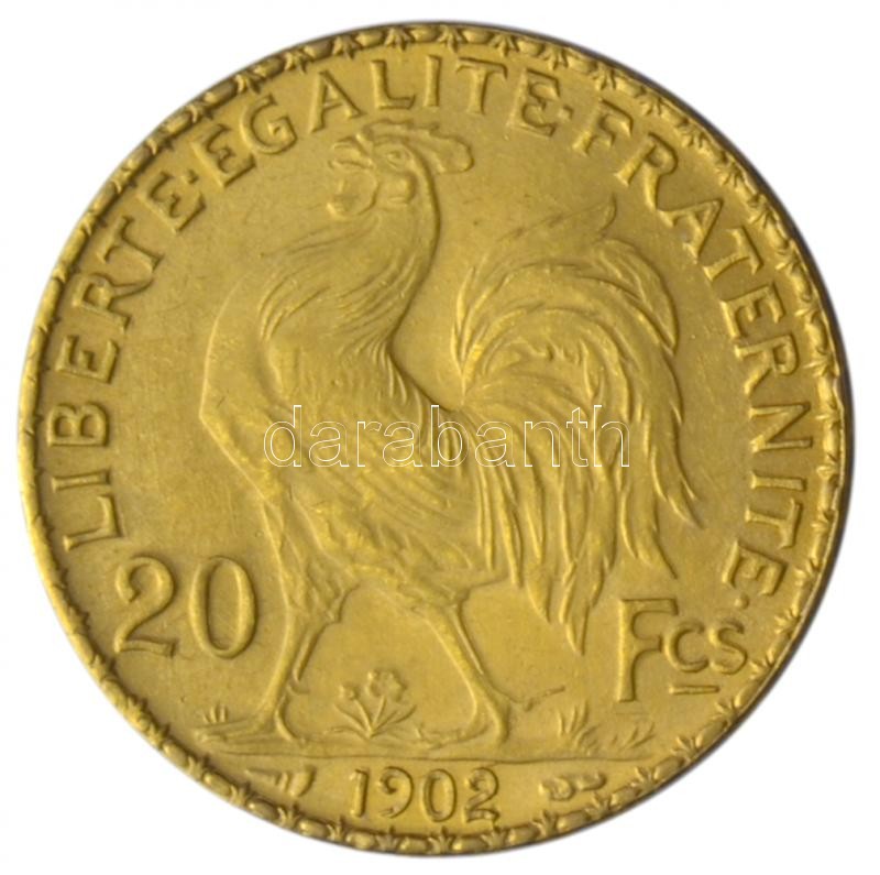 Franciaország/Modern Köztársaság 1902. 20Fr Au "Kakas" (6.44g/0.900) T... https://www.darabanth.com/hu/190-Gyorsarveres/190.0/Numizmatika/Magyar-es-kulfoldi-arany-penzek~600010/FranciaorszagModern-Koztarsasag-1902-20Fr-Au-Kakas-644g0900-T2-3Cbr3EFranceModern-Repu~II712087