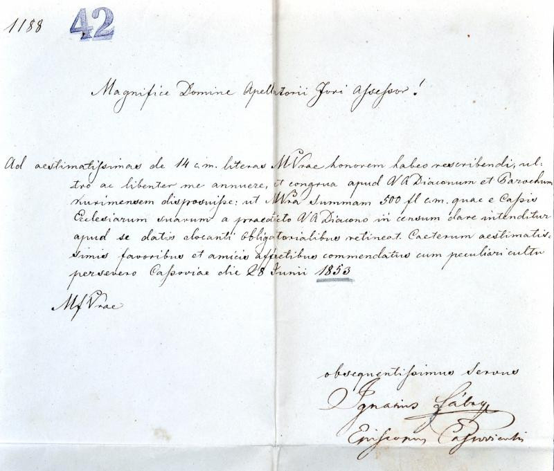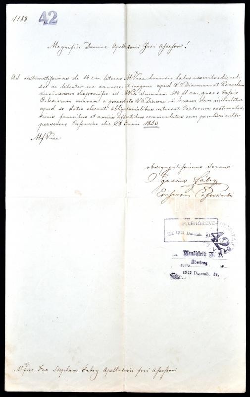 Leírás: 1853 Levél Fábry Ignác kassai püspök eredeti aláírásával. A levélen és a borítékon későbbi, oda nem illő bélyegzések
