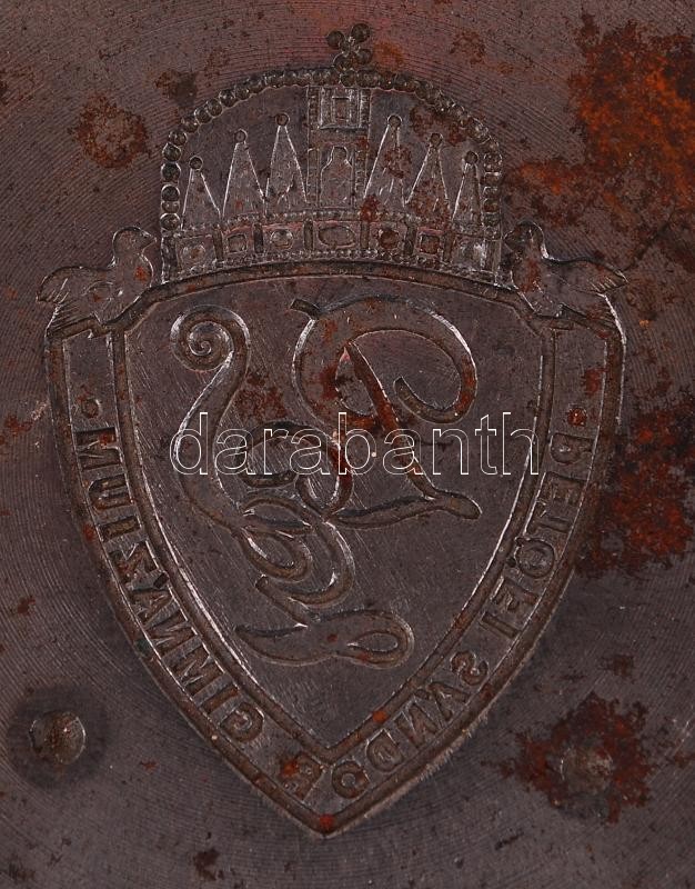Leírás: Petőfi Sándor gimnázium feliratú címeres acél verőtő d: 8 cm
