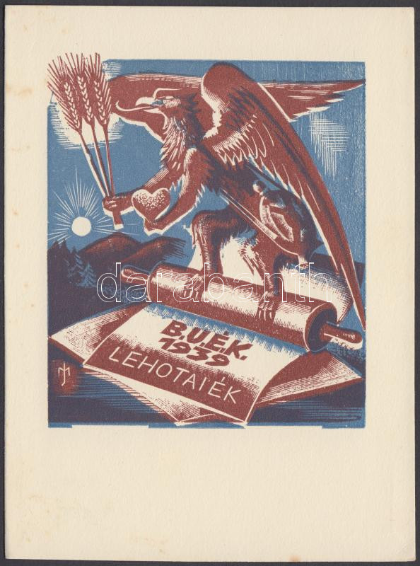 Leírás: Menyhárt József (1901-1976): Buék 1939 - Lehotaiék. Színes fametszet, papír, dúcon jelzett (MJ), 15x11cm