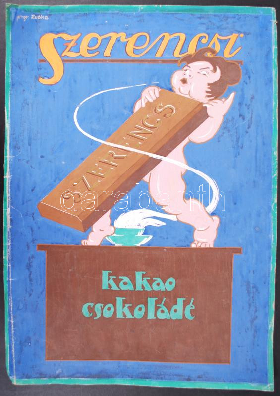 cca 1930 Szerencsi csokoládé plakátterv Zsóka jelzéssel. Akvarell 38x5... https://www.darabanth.com/hu/191-Gyorsarveres/191.0/Festmeny-mutargy-papirregiseg-egyeb/Festmenyek-es-grafikak~600001/cca-1930-Szerencsi-csokolade-plakatterv-Zsoka-jelzessel-Akvarell-38x50-cm~II724607
