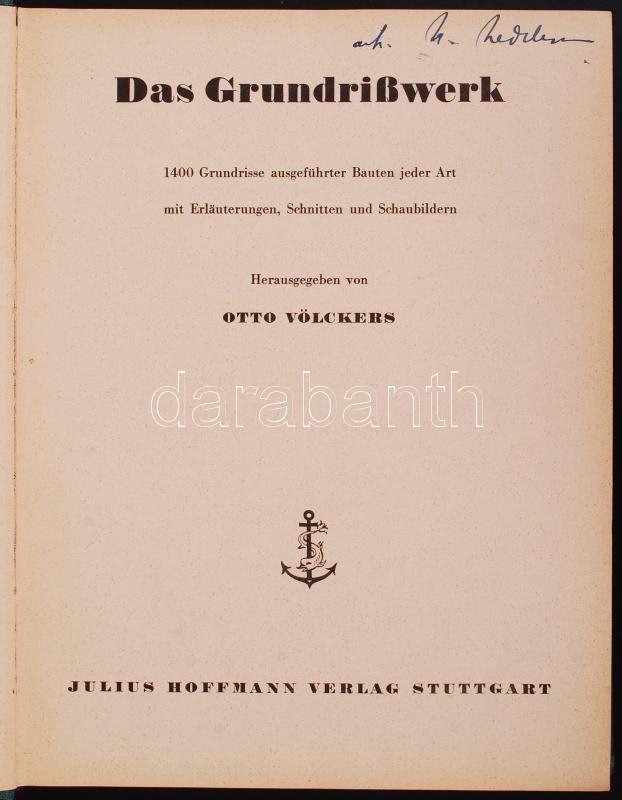 Völckers, Otto: Das Grundrißwerk. 1400 Grundrisse ausgeführter Bauten jeder Art mit Erläuterungen, Schnitten und Schaubildern. Hrsg. v. - -. Stuttgart, 1941, Julius Hoffmann. Kiadói egészvászon kötésben, jó állapotú /