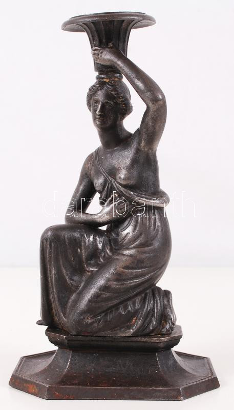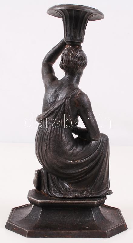 Leírás: Jelzett (Munkács), öntöttvas figurális antik gyertyatartó, m:23 cm