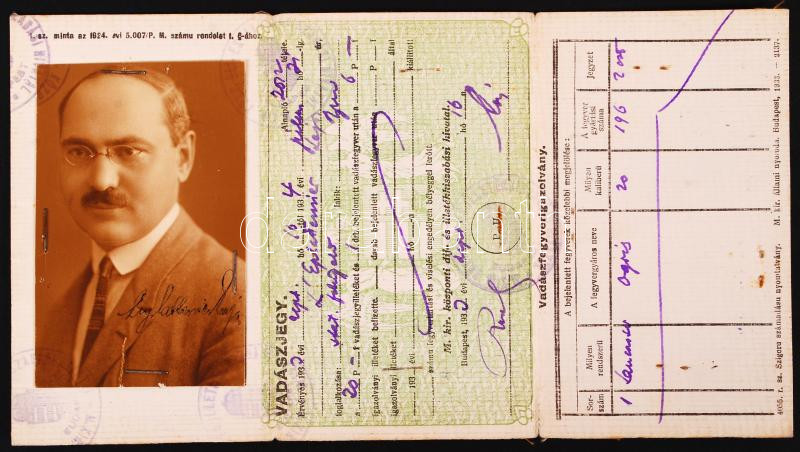 1934 Fényképes vadászjegy / Hunting ID https://www.darabanth.com/hu/191-Gyorsarveres/191.0/Festmeny-mutargy-papirregiseg-egyeb/Okmanyok~600030/1934-Fenykepes-vadaszjegy-Hunting-ID~II722829