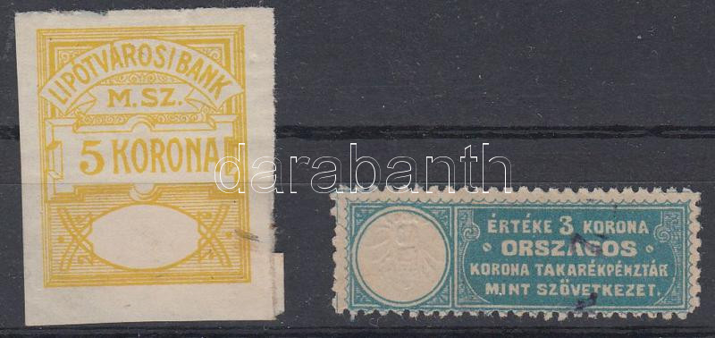 Leírás: Lipótvárosi bank és Országos Takarék Szövetkezet 2 klf reklámbélyeg