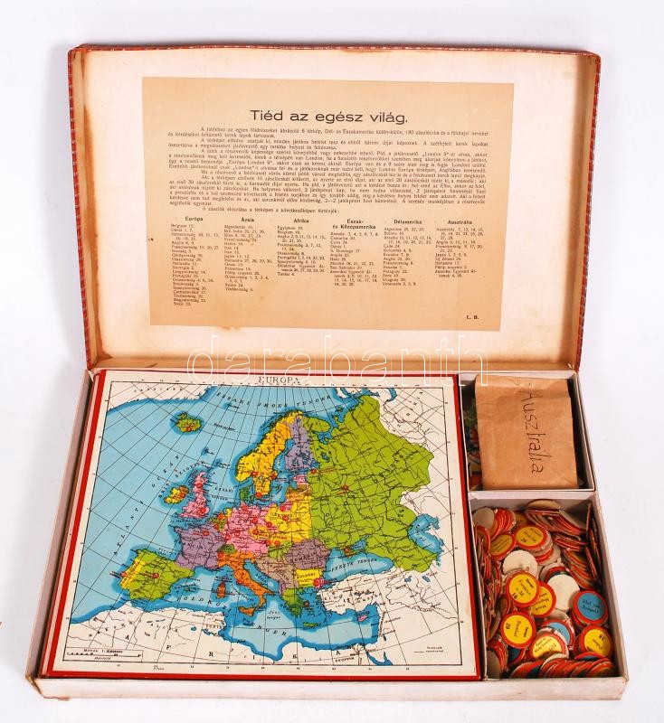Cca 1930 Tied az egész világ, társasjáték, majdnem teljes, játszható á... https://www.darabanth.com/hu/191-Gyorsarveres/191.0/Festmeny-mutargy-papirregiseg-egyeb/Regi-jatekok~600007/Cca-1930-Tied-az-egesz-vilag-tarsasjatek-majdnem-teljes-jatszhato-allapotban-doboza-ser~II722796