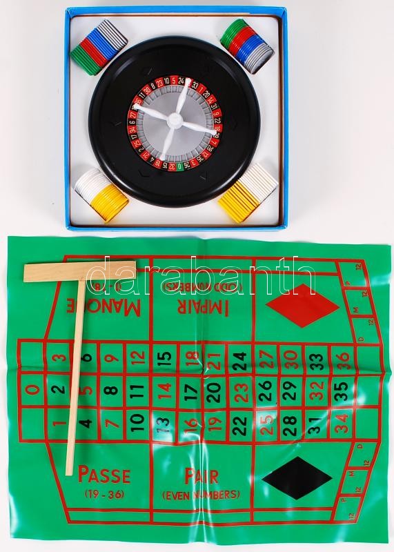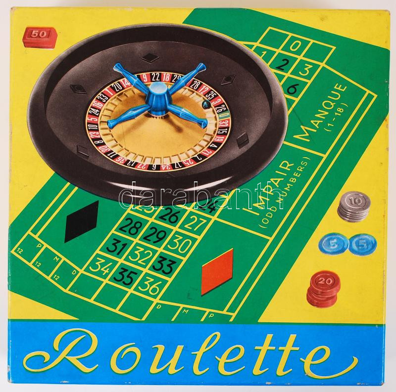 Cca 1970 Roulett, társasjáték, majdnem teljes, játszható állapotban, e... https://www.darabanth.com/hu/191-Gyorsarveres/191.0/Festmeny-mutargy-papirregiseg-egyeb/Regi-jatekok~600007/Cca-1970-Roulett-tarsasjatek-majdnem-teljes-jatszhato-allapotban-eredeti-dobozaban-23C3972~II722809