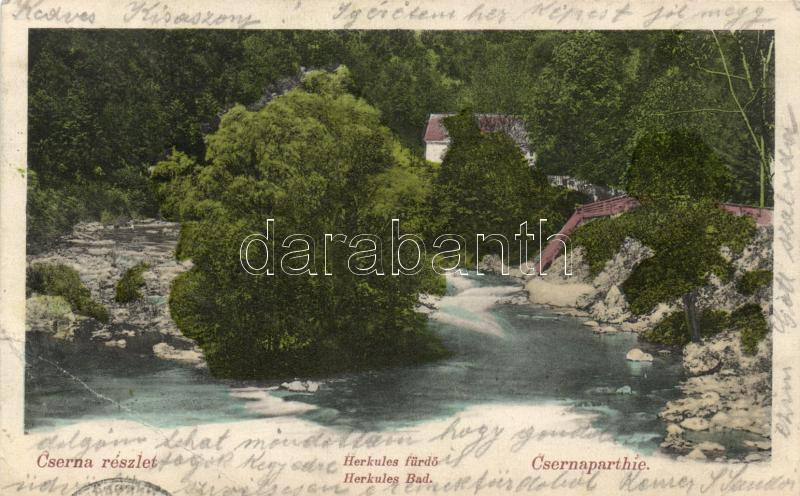 Herkulesfürdő, Cserna-part / creek, Divald (fa) https://www.darabanth.com/hu/191-Gyorsarveres/191.0/Kepeslapok/Erdely~400022/Herkulesfurdo-Cserna-part-creek-Divald-fa~II723308