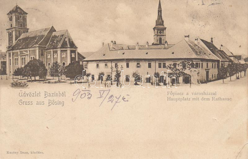 Bazin, Pezinok; Főpiac, városháza / market, town hall (EK) https://www.darabanth.com/hu/191-Gyorsarveres/191.0/Kepeslapok/Felvidek~400023/Bazin-Pezinok-Fopiac-varoshaza-market-town-hall-EK~II718135