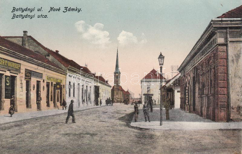 Érsekújvár, Batthyányi utca, Kosztelecz Ede kereskedése / street, shop https://www.darabanth.com/hu/191-Gyorsarveres/191.0/Kepeslapok/Felvidek~400023/Ersekujvar-Batthyanyi-utca-Kosztelecz-Ede-kereskedese-street-shop~II721342