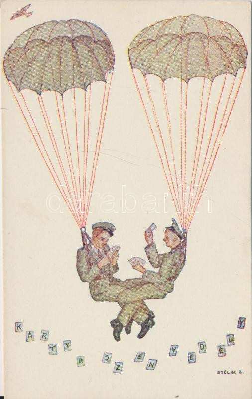 Kártya szenvedély, katonai humor, s: Stélik L. / Card passion, militar... https://www.darabanth.com/hu/191-Gyorsarveres/191.0/Kepeslapok/Kartya~600091/Kartya-szenvedely-katonai-humor-s-Stelik-L-Card-passion-military-humour-s-Stelik-L~II718730