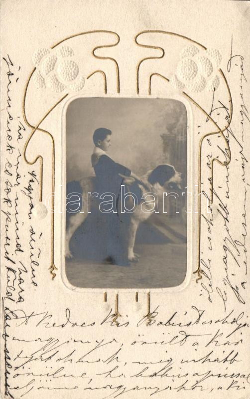 Leírás: Boy with St. Bernard dog, photo, Art Nouveau (EK)