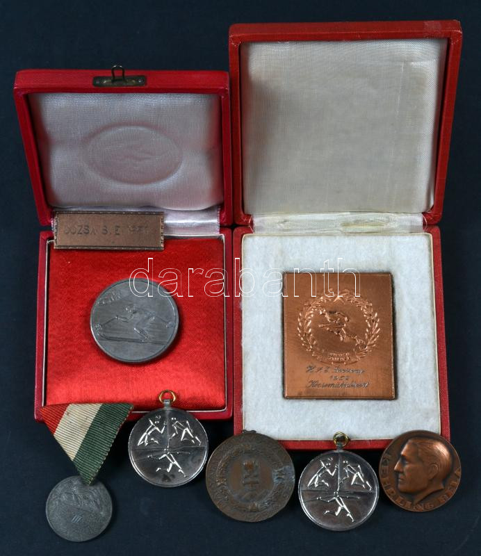 Leírás: 8db vegyes sportérem, közte 1934. "Magyar Ökölvívó Szövetség" Br ifjú bajnoki érme, 1952. "Budapesti Honvéd S.E." plakett tokban, 1948. "Magyar Tenisz Szövetség" Br érme T:vegyes