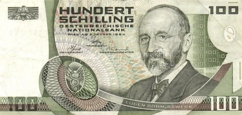 Austria 1984. 100 S... https://www.darabanth.com/hu/191-Gyorsarveres/191.0/Numizmatika/Kulfoldi-bankjegyek~200013/Ausztria-1984-100Sch-3x-bevalthato-valuta-TIII-3Cbr3EAustria-1984-100-Schilling-3x-redeemabl~II721034
