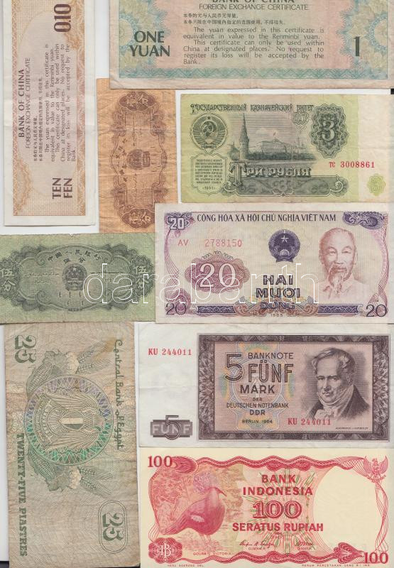 China 1953-1979. 1 Fen - 1 Yuan 4 different + Egypt 25 Piastres C:F + GDR 1964. 5 Mark + Indonesia 1984. 100 Rupiah + Vietnam 1985. 20 Dong + Soviet Union 1961. 3 Rubles C:AU,VF,F