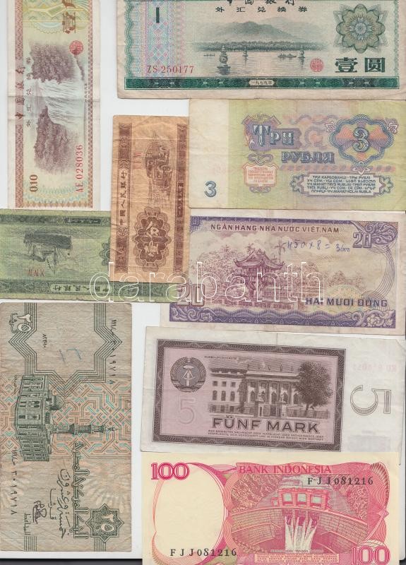 Leírás: Kína 1953-1979. 1f - 1Y 4klf + Egyiptom 25P T:III + NDK 1964. 5M Indonézia 1984. 100R + Vietnam 1985. 20D + Szovjetunió 1961. 3R T:I-,II-,III