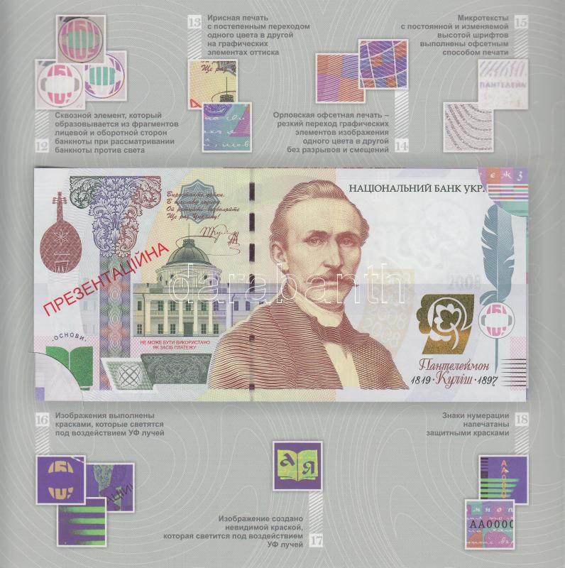 Ukrajna 1819-1897. "Panteleimon Kulish" papírpénz tervezet, papírtokban, ismertetőjegyek leírásával T:I