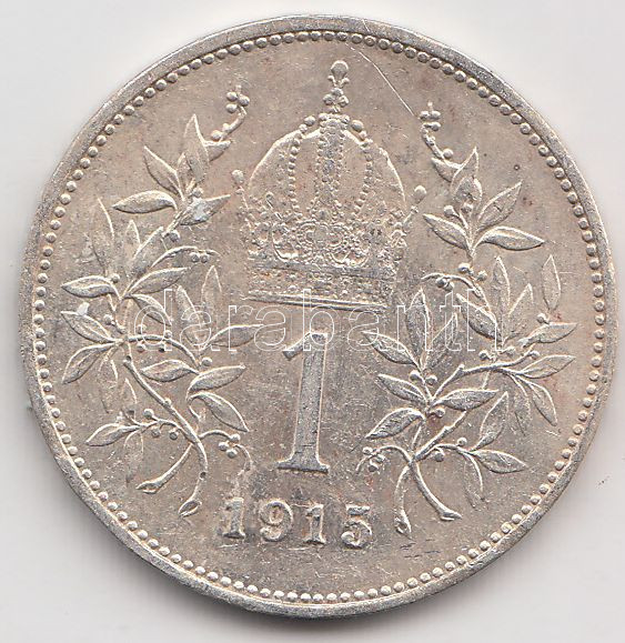 Austria 1915. 1 Corona Ag C:XF https://www.darabanth.com/hu/191-Gyorsarveres/191.0/Numizmatika/Kulfoldi-fem-es-ezustpenzek~200014/Ausztria-1915-1K-Ag-T2-3Cbr3EAustria-1915-1-Corona-Ag-CXF~II720122