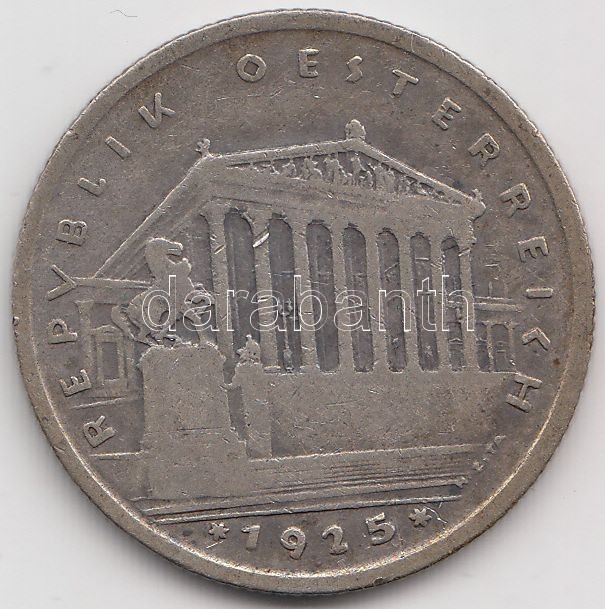 Austria 1925. 1 Schilling C:F https://www.darabanth.com/hu/191-Gyorsarveres/191.0/Numizmatika/Kulfoldi-fem-es-ezustpenzek~200014/Ausztria-1925-1Sch-Ag-T3-3Cbr3EAustria-1925-1-Schilling-CF~II719936