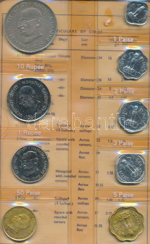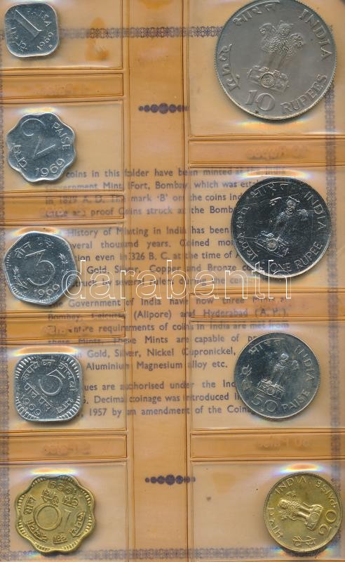 India 1969. 1P Al - 10R Ag 9db-os forgalmi szett műbőr tokban, tanúsítvánnyal T:1