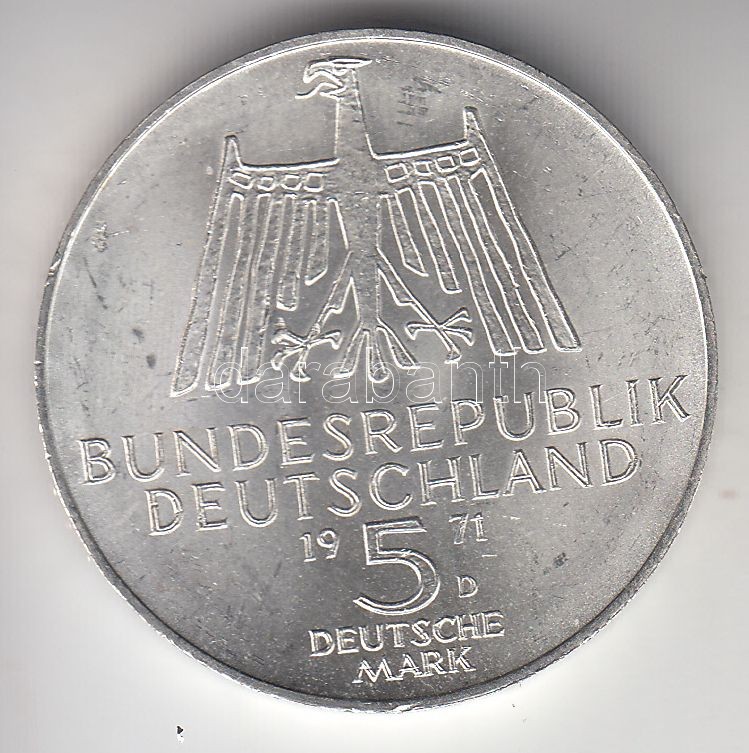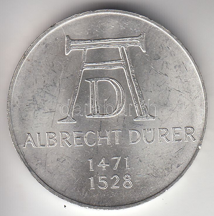 GFR 1971D 5 Mark Ag "Dürer" C:XF https://www.darabanth.com/hu/191-Gyorsarveres/191.0/Numizmatika/Kulfoldi-fem-es-ezustpenzek~200014/NSZK-1971D-5M-Ag-Durer-T2-3Cbr3EGFR-1971D-5-Mark-Ag-Durer-CXF~II719582