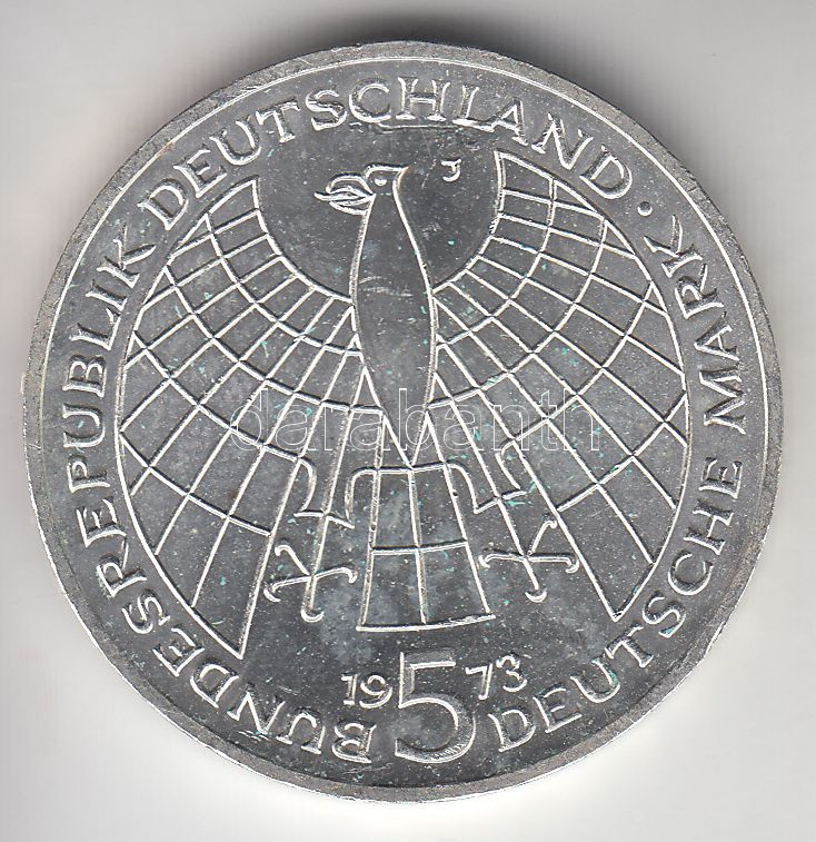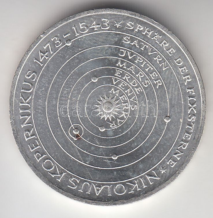 GFR 1973J 5 Mark "Birth of Nicholas... https://www.darabanth.com/hu/191-Gyorsarveres/191.0/Numizmatika/Kulfoldi-fem-es-ezustpenzek~200014/NSZK-1973J-5M-Ag-Kopernikusz-T2-3Cbr3EGFR-1973J-5-Mark-Birth-of-Nicholas-Copernicus-CXF~II719579