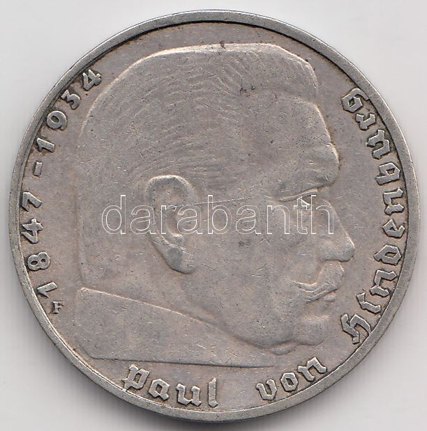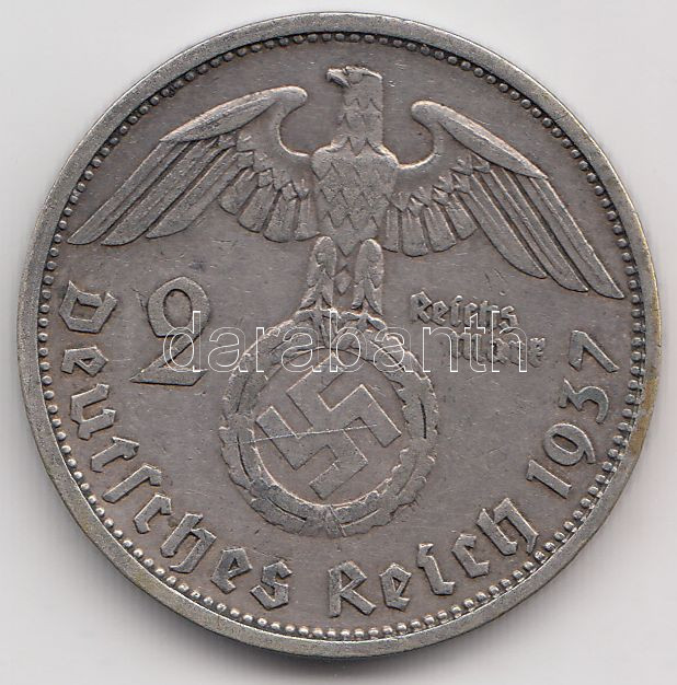 German Third Reich ... https://www.darabanth.com/hu/191-Gyorsarveres/191.0/Numizmatika/Kulfoldi-fem-es-ezustpenzek~200014/Nemet-3-Birodalom-1937F-2M-Ag-Hindenburg-T2-3-3Cbr3EGerman-Third-Reich-1937F-2-Marks-Ag-Hinden~II723582