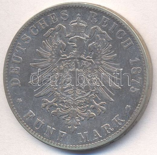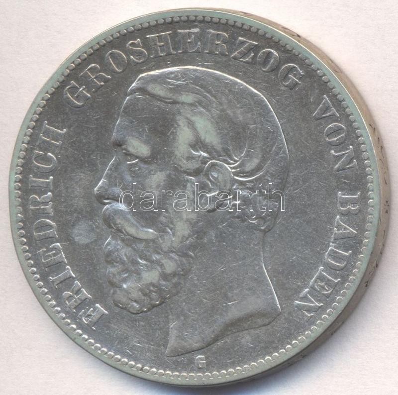 German States / Baden 1875G 5 Mark Ag "Friedrich I grand duke" C:VF,F
