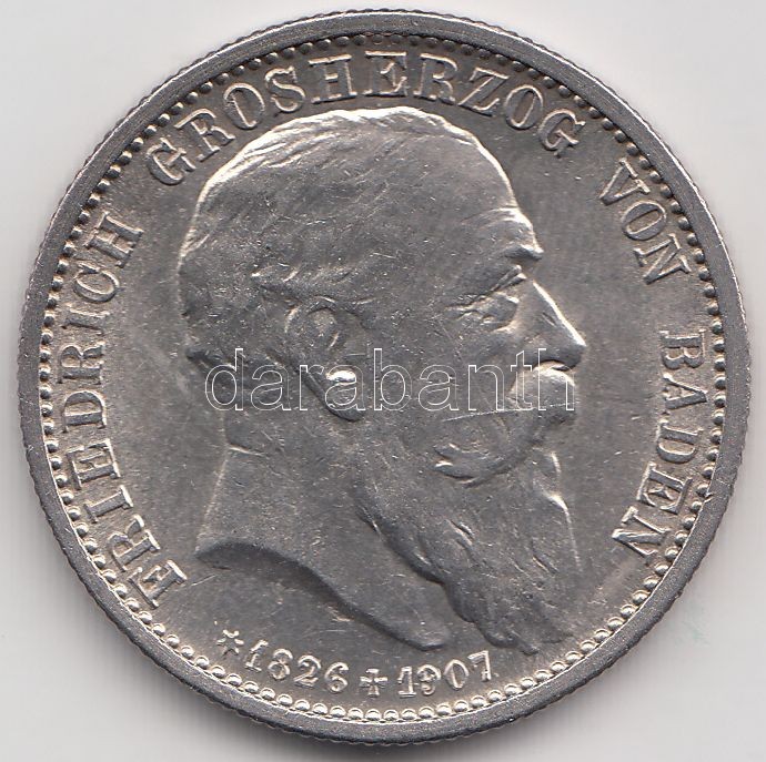 Német Államok / Baden 1907G 2M Ag "I. Frigyes nagyherceg halála" (11.18g) T:1-,2