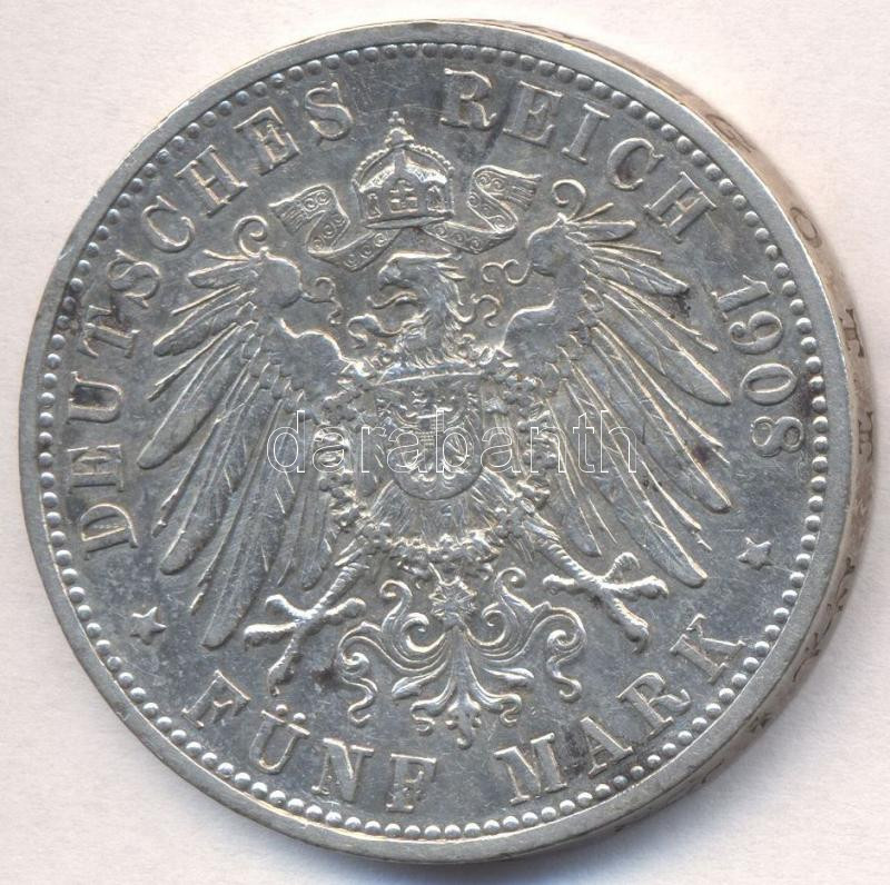 Leírás: Német Államok / Baden 1908G 5M Ag "II. Frigyes nagyherceg" (27.86g) T:2,2-
